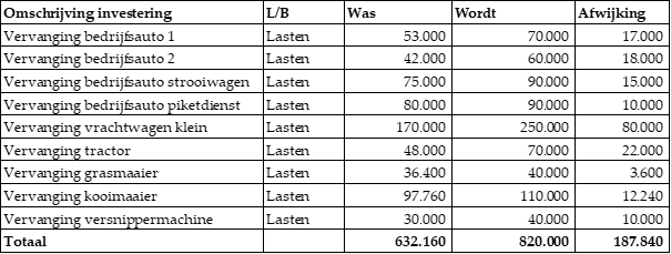 Aanpassing investeringsbedragen